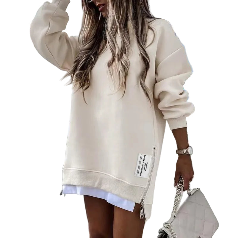 MELISA™ – Casual Drop Shoulder Zipper Slit Sweatshirt Dress